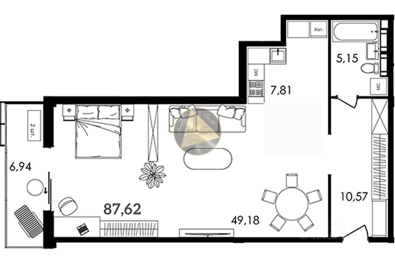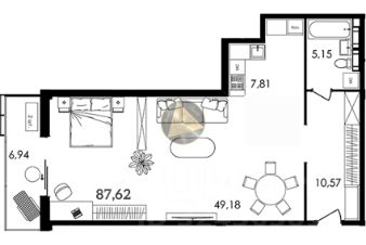 - Жилая комната 49.18 м2