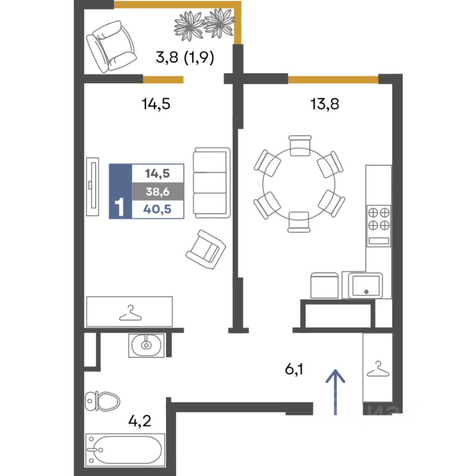 Общая площадь40,5 м²