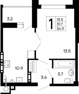Общая площадь34,9 м²