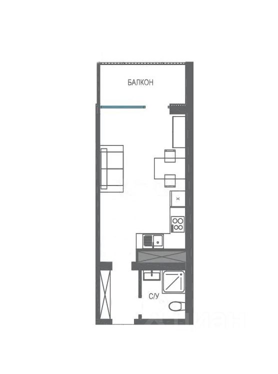 Общая площадь квартиры составляет 28 м.кв. (с учётом балкона 3,3 м.кв.), расположена на 4 этаже 17-ти этажного жилого дома. В доме два современных лифта.