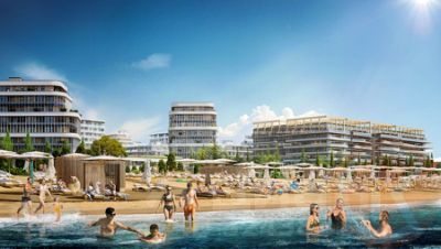 Предлагаются апартаменты студия с видом на море. В пешей доступности находится парк для прогулок и спортивных занятий.