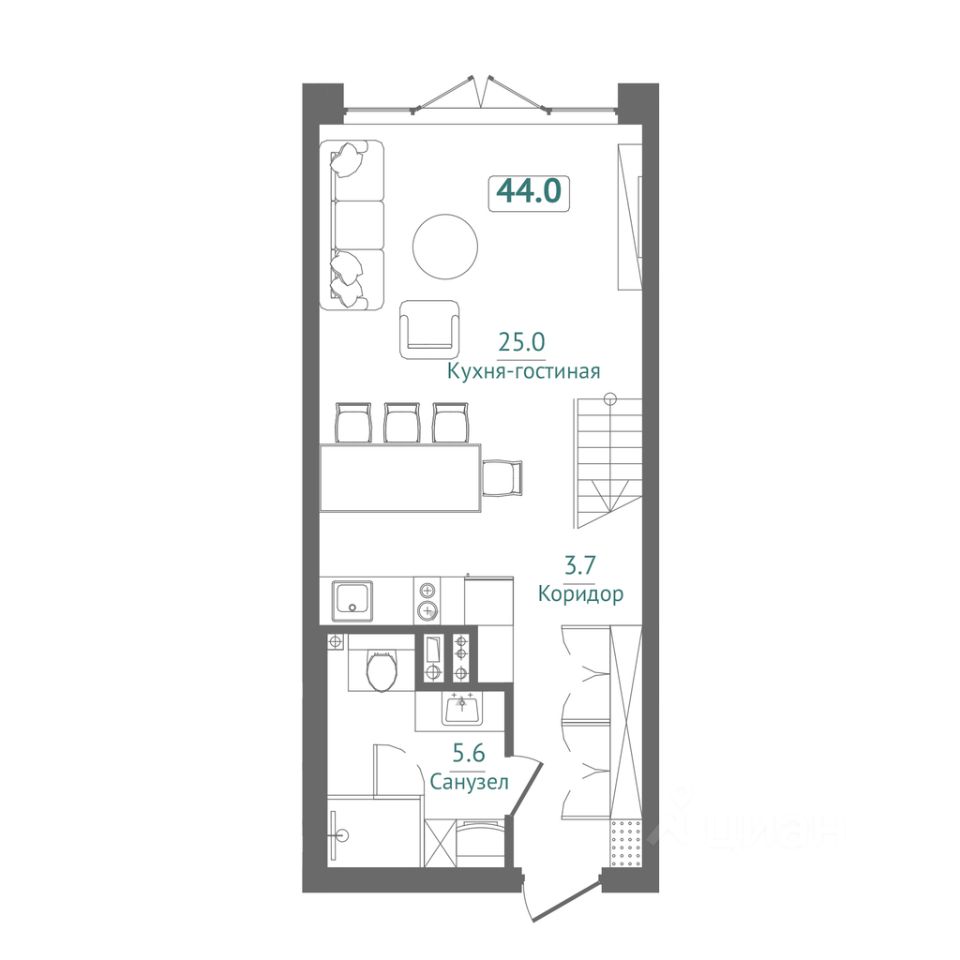 Продается квартира площадью 44м² в жилом комплексе Сады Киммерии на 1 этаже стоимостью 15 620 000 рублей, с высокими потолками 5.1 метра