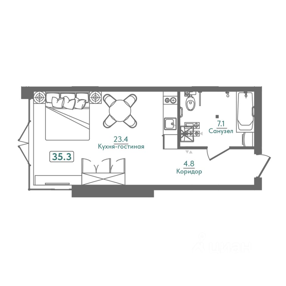 Общая площадь35,3 м²