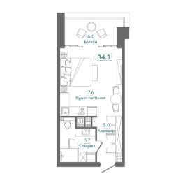 Продается квартира площадью 34.3м² в жилом комплексе Сады Киммерии на 2 этаже стоимостью 13 034 000 рублей, с высокими потолками 3.2 метра