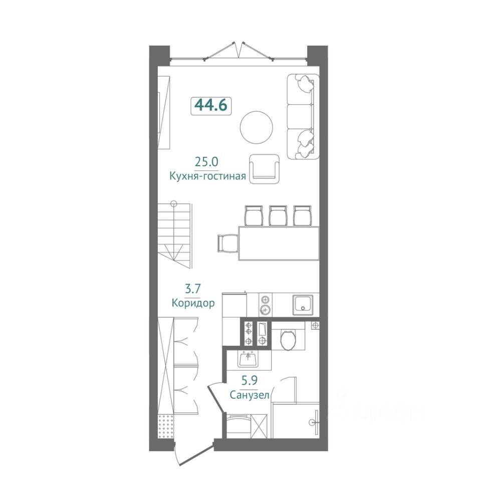Продается квартира площадью 44.6м² в жилом комплексе Сады Киммерии на 1 этаже стоимостью 15 833 000 рублей, с высокими потолками 5.1 метра