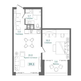 Продается квартира площадью 59.3м² в жилом комплексе Сады Киммерии на 2 этаже стоимостью 20 162 000 рублей, с высокими потолками 3.2 метра