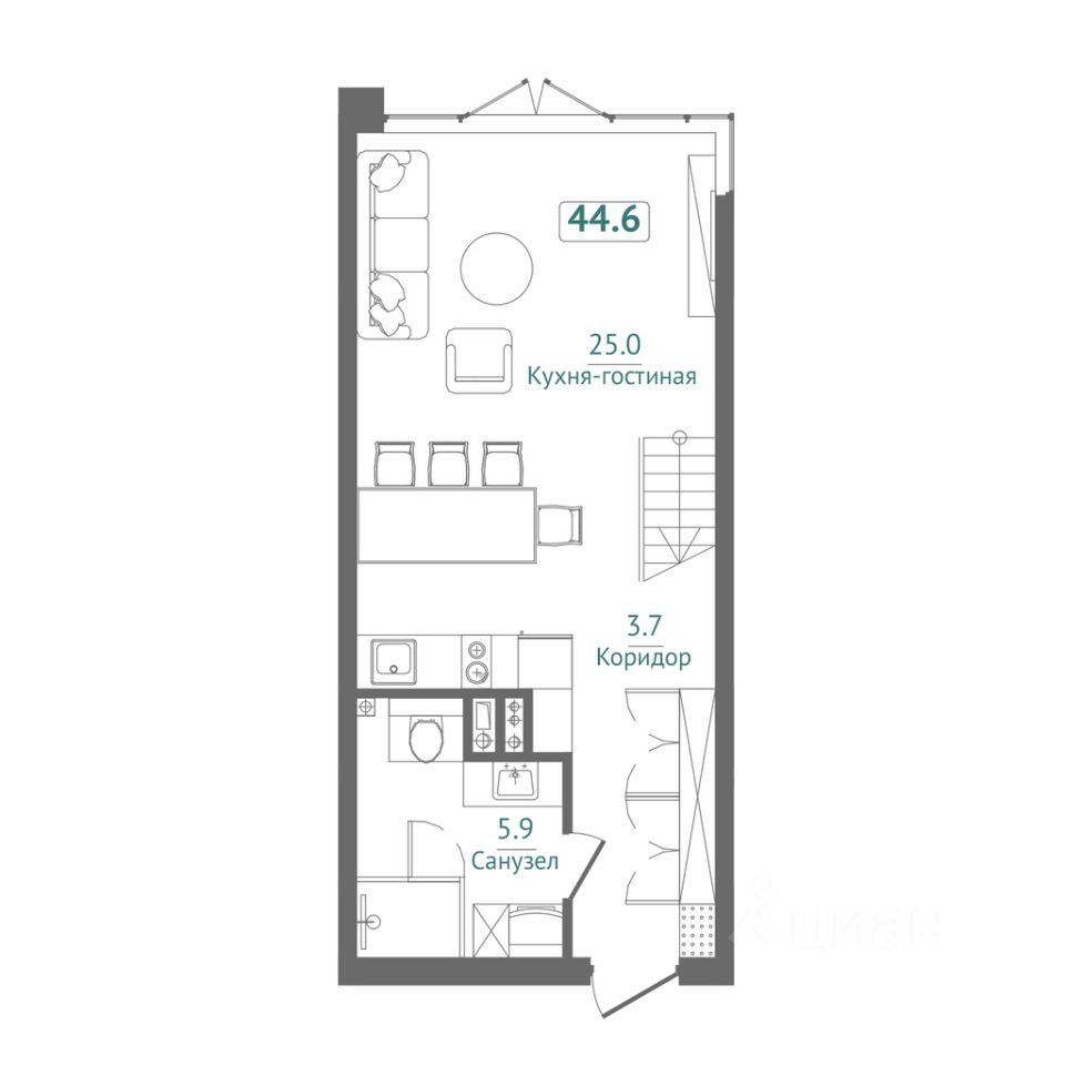 Продается квартира площадью 44.6м² в жилом комплексе Сады Киммерии на 1 этаже стоимостью 15 833 000 рублей, с высокими потолками 5.1 метра
