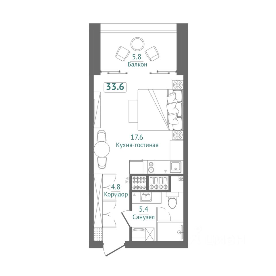 Продается квартира площадью 33.6м² в жилом комплексе Сады Киммерии на 4 этаже стоимостью 13 272 000 рублей, с высокими потолками 3.2 метра
