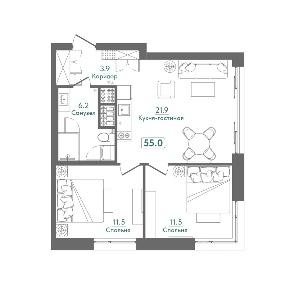 Продается квартира площадью 55м² в жилом комплексе Сады Киммерии на 4 этаже стоимостью 19 250 000 рублей, с высокими потолками 3.2 метра