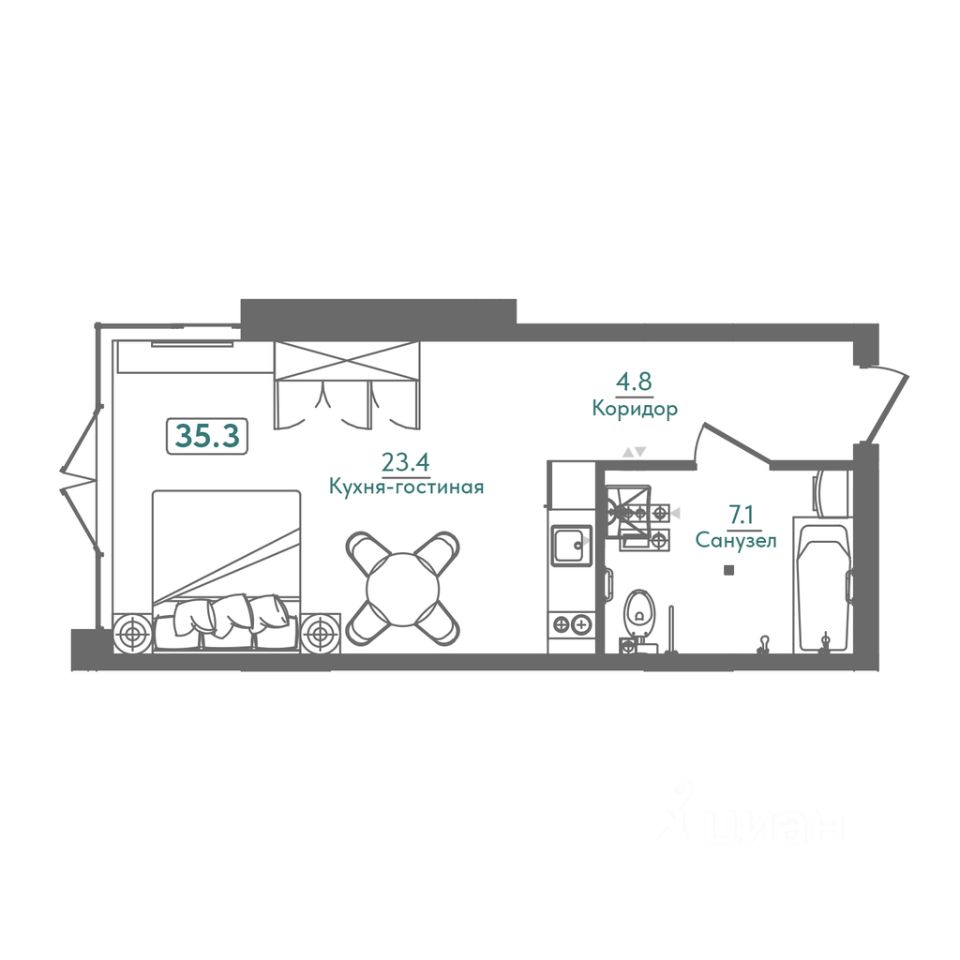 Продается квартира площадью 35.3м² в жилом комплексе Сады Киммерии на 1 этаже стоимостью 12 884 500 рублей, с высокими потолками 3.2 метра