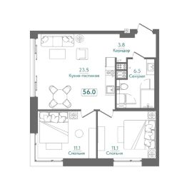 Продается квартира площадью 56м² в жилом комплексе Сады Киммерии на 2 этаже стоимостью 19 320 000 рублей, с высокими потолками 3.2 метра