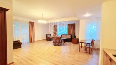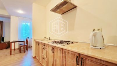 Пространство оформлено идеальным дизайнерским ремонтом, включает удобную встроенную кухню и изысканную аристократическую мебель.