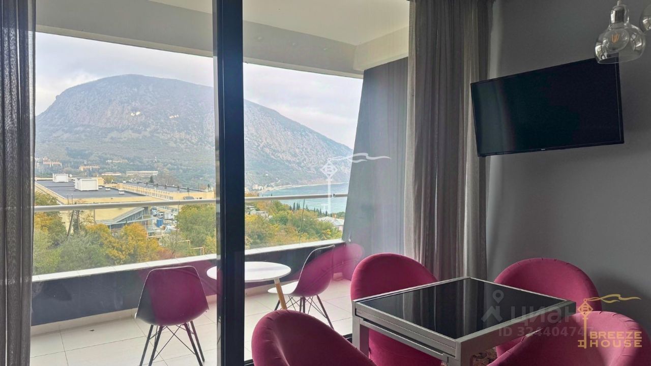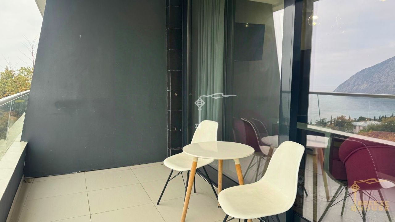 Просторная студия площадью 44 м² с ремонтом и видом на море и гору Аю-Даг в комплексе "Алтея", расположенная в живописном уголке Южного берега Крыма, в Гурзуфе.