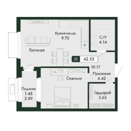 Продаётся 2-комнатная квартира в строящемся доме (дом 2), срок сдачи: III-кв. 2027, общей площадью 42.53 кв.м., на 3 этаже.
