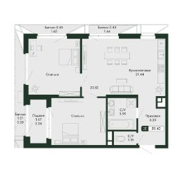 Продаётся 3-комнатная квартира в строящемся доме (дом 2), срок сдачи: III-кв. 2027, общей площадью 59.4 кв.м., на 7 этаже.