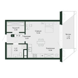 Продаётся студия в строящемся доме (дом 2), срок сдачи: III-кв. 2027, общей площадью 34.32 кв.м., на 4 этаже.