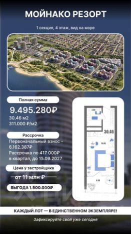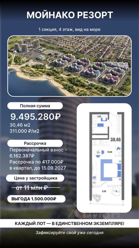 ПЕРЕУСТУПКА ПРАВА — ВЫГОДНАЯ ЦЕНА! НИЖЕ РЫНКА! MOINACO RESORT — LUXE LIFE НА ПОБЕРЕЖЬЕ КРЫМА Евпатория — не просто курорт, а инвестиционная жемчужина с круглогодичным спросом. MOINACO RESORT — не просто апартаменты, а самодостаточный курортный город, где отдых, здоровье и доход идут рука об руку. УСЛОВИЯ ПОКУПКИ — МАКСИМАЛЬНО ВЫГОДНО И БЕЗОПАСНО Защита по ФЗ-214 — вы юридически защищены как дольщик Эскроу-счета — ваши деньги под надёжной защитой до передачи ключей Ипотека / рассрочка — поможем оформить на лучших условиях ПОЧЕМУ MOINACO RESORT — ЭТО ЛУЧШЕЕ ВЛОЖЕНИЕ НА ЗАПАДЕ КРЫМА? Собственный лазурный пляж — мягкий песок, чистая вода, 2 минуты на бесплатном трансфере Озеро Мойнако + 40 ГА набережной — уникальная рекреационная зона, аналогов в Крыму нет! 5 минут до центра Евпатории — магазины, рестораны, достопримечательности, инфраструктура — всё рядом Круглогодичная загрузка — благодаря медицинскому центру и грязелечебнице, доход стабилен даже зимой! ИНФРАСТРУКТУРА, КОТОРАЯ ПРЕВОСХОДИТ ОЖИДАНИЯ Это не просто ЖК — это курорт мирового уровня: Открытый и крытый бассейны с подогревом Рестораны и буфеты — от фитнес-меню до крымских деликатесов Спа-комплекс: массаж, термальные процедуры, инфракрасные сауны Грязелечебница — уникальные процедуры на основе лечебных грязей озера Мойнако Фитнес-центр, теннисные корты — спорт каждый день Винотека, бильярд, конгресс-зал, амфитеатр — для отдыха, встреч и мероприятий Медицинский центр — основа круглогодичной рентабельности АРХИТЕКТУРА, КОТОРАЯ ВДОХНОВЛЯЕТ Самые высокие здания на побережье — панорамные окна, свет, воздух, виды на озеро и закаты Апартаменты DELUXE-класса — европейские материалы, умный дом, продуманная эргономика ЭКСКЛЮЗИВНОЕ ПРЕДЛОЖЕНИЕ ОТ СОБСТВЕННИКА! Мы физически не успеваем всё выкладывать на Авито — у нас десятки эксклюзивных предложений ниже рыночных цен! Горячие объекты уходят за часы — не упустите шанс купить с выгодой 1530%! Лучшие предложение по всем переуступкам Крыма у нас физически не успеваем все выкладывать на авито, много эксклюзива и очень горячих!!! ниже рынка предложений по всем обектам Крыма! Таких предложений уже давно нет у застройщика, но есть уникальное предложение от собственника! звоните и экономьте свои миллионы с нами, юридическое сопровождение, ваш брокер с вами до выдачи ключей и на всех этапах сделки . Звоните, если есть цель выгодно инвестировать #Крым #Евпатория #недвижимость #мойнако#купитьквартиру #квартира #однокомнатная #виднаморе #евроремонт #кондиционер #WiFi #отдыхвКрыму #лето2025 #дляотпуска #недвижимостьКрым #курортнаянедвижимость #отдыхвКрыму #продажаквартиры #квартирауморя #виднаморе #возлеморя #дляотпуска #дляотдыха #длясемьи #инвестиции #переездвКрым #лето2025 #сезон #отпуск #каникулы #море #пляж #солнце #скидка