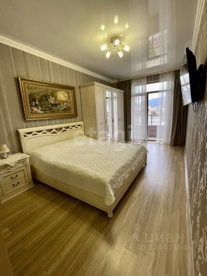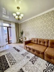 Квартира состоит из просторной спальни, гостиной, из которых есть выход на балкон, кухни, совмещенного санузла и балкона с потрясающим видом на горы.