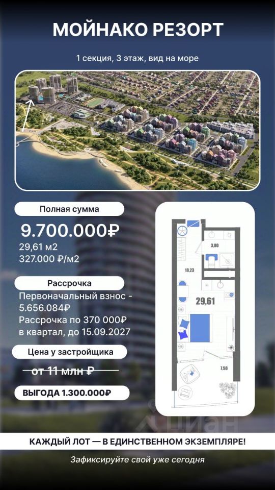 Таких предложений уже давно нет у застройщика, но есть уникальное предложение от собственника!