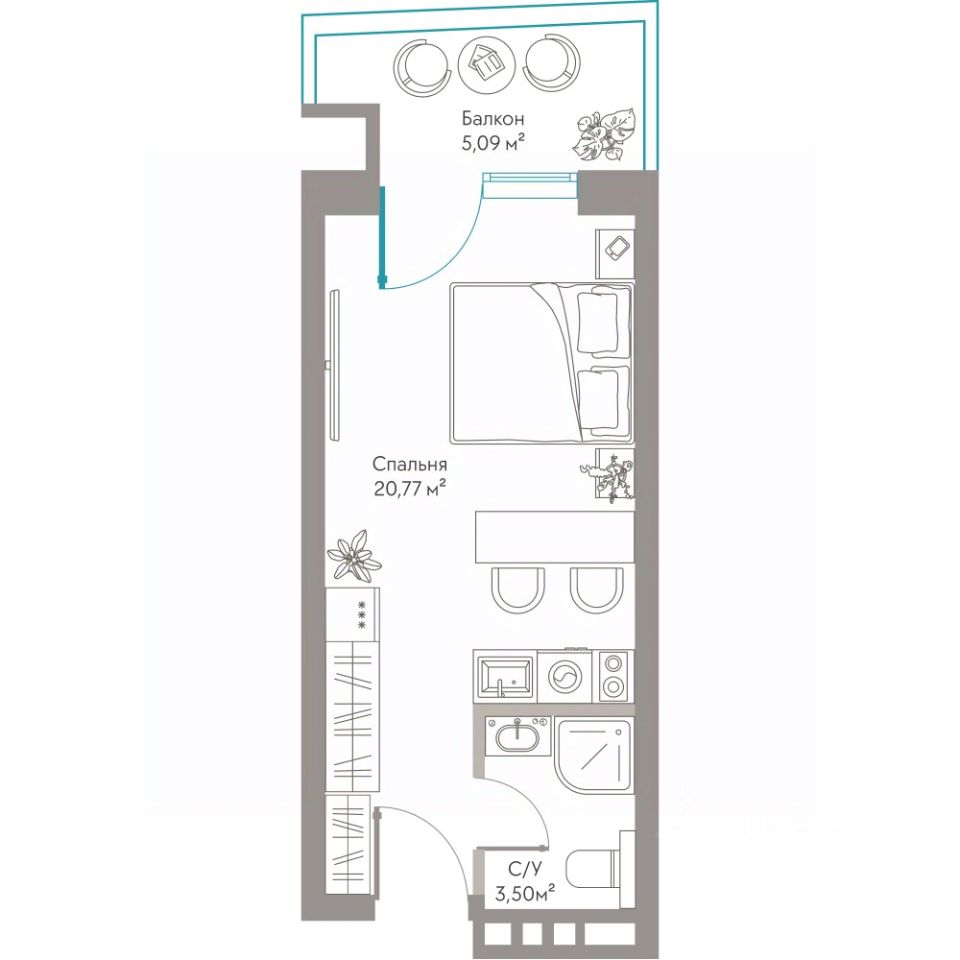 Продаются Апартаменты площадью 29,36 м²с приватной террасой, захватывающим видом на