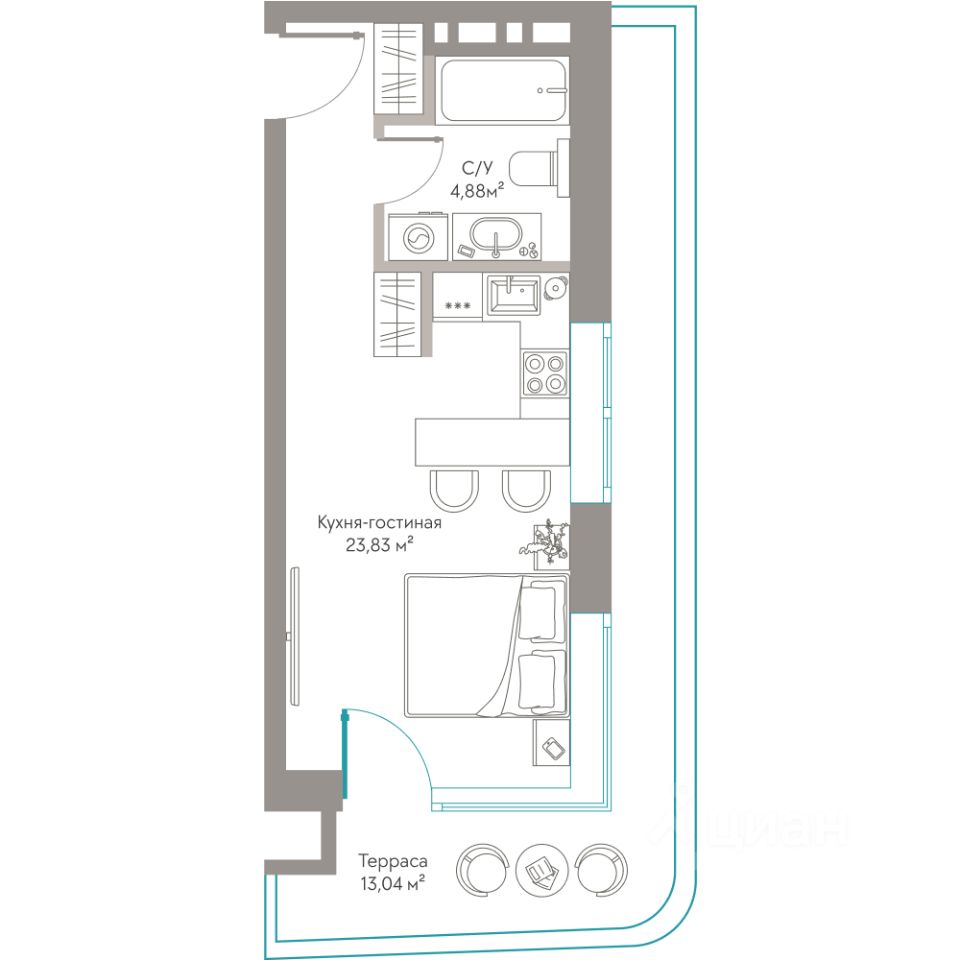 Продаются Апартаменты площадью 41,75 м²с приватной террасой, захватывающим видом на