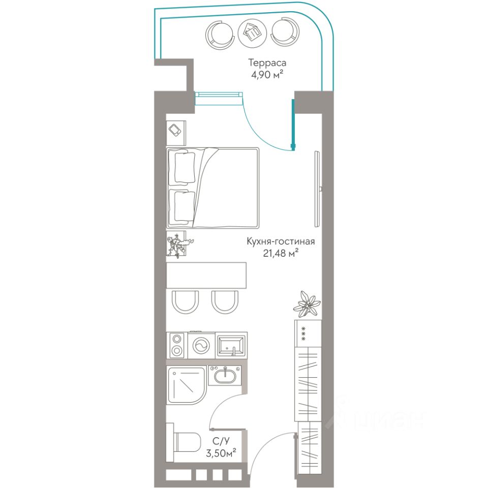 Продаются Апартаменты площадью 29,88 м²с приватной террасой, захватывающим видом на
