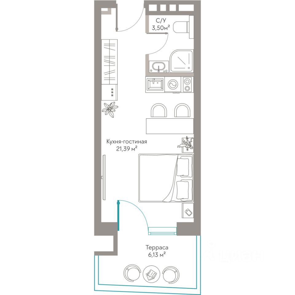 Продаются Апартаменты площадью 31,02 м²с приватной террасой, захватывающим видом на