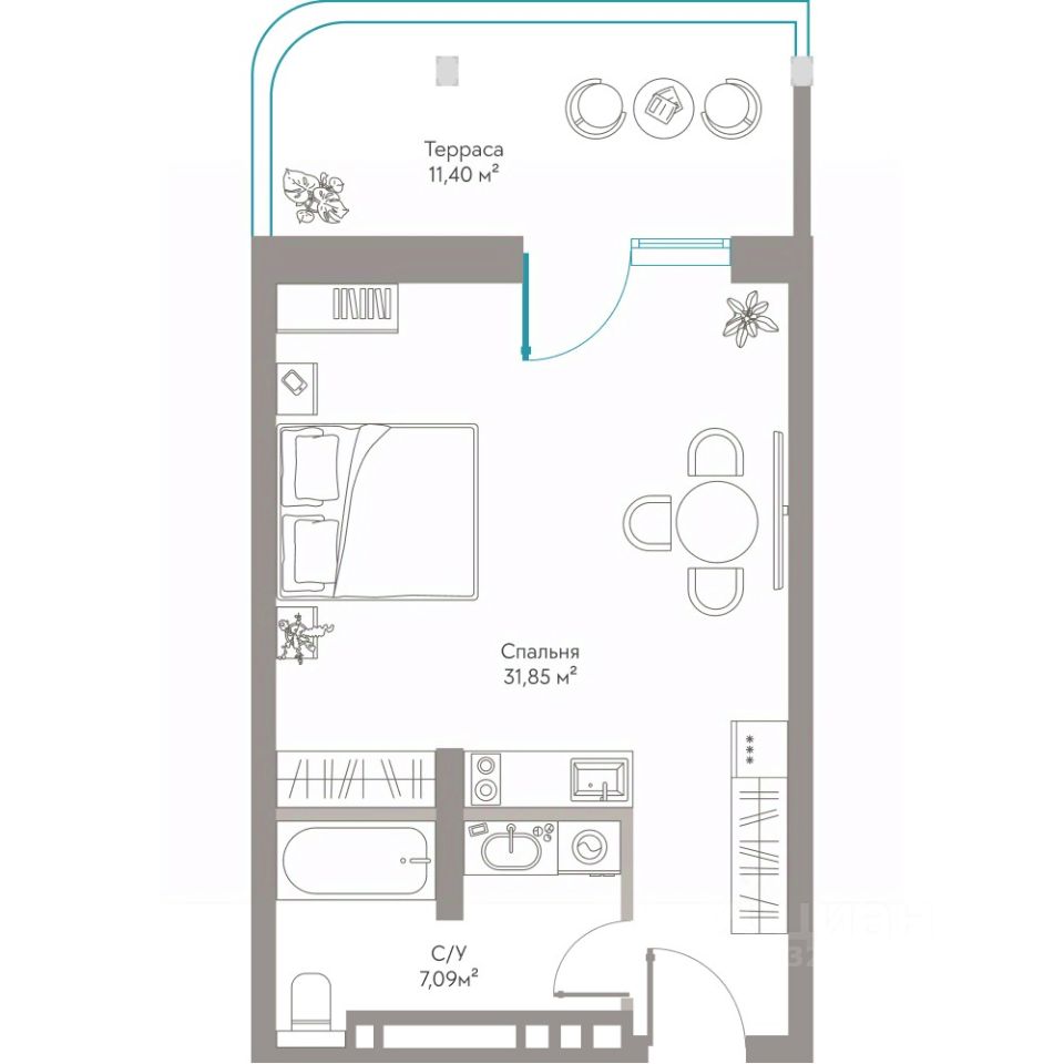 Продаются Апартаменты площадью 50.34 м²с приватной террасой, захватывающим видом на
