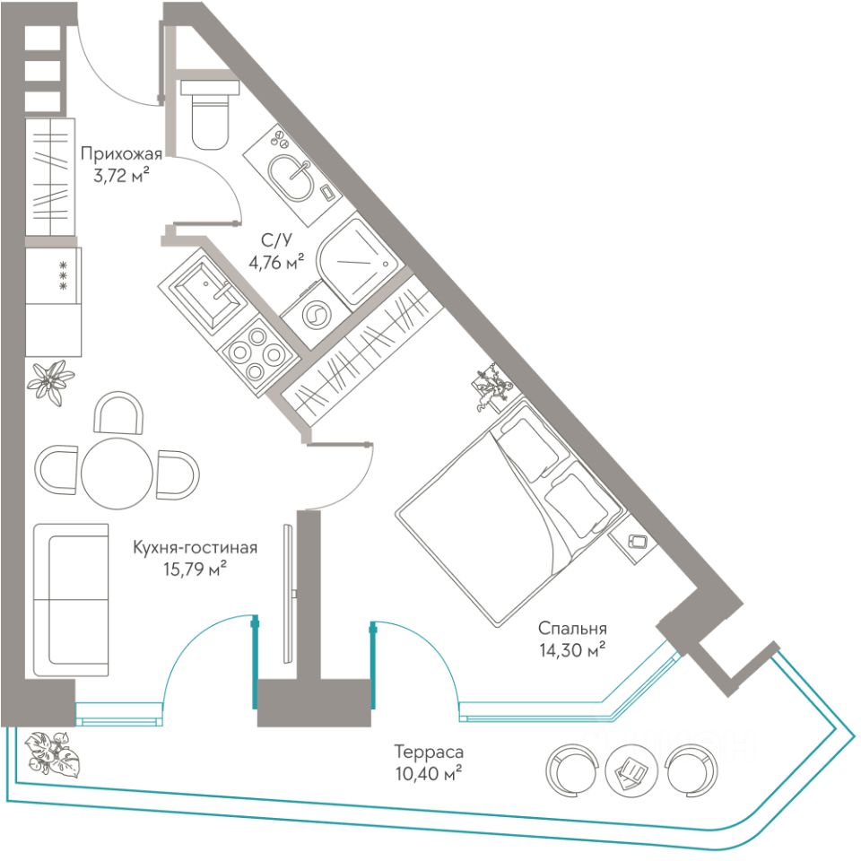 Продаются Апартаменты площадью 48,97 м²с приватной террасой, захватывающим видом на Море