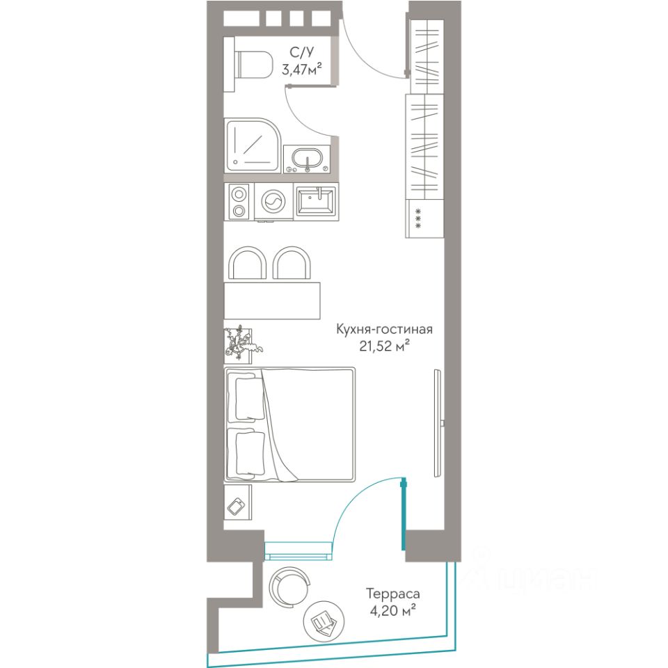 Продаются Апартаменты площадью 29,19 м²с приватной террасой, захватывающим видом на