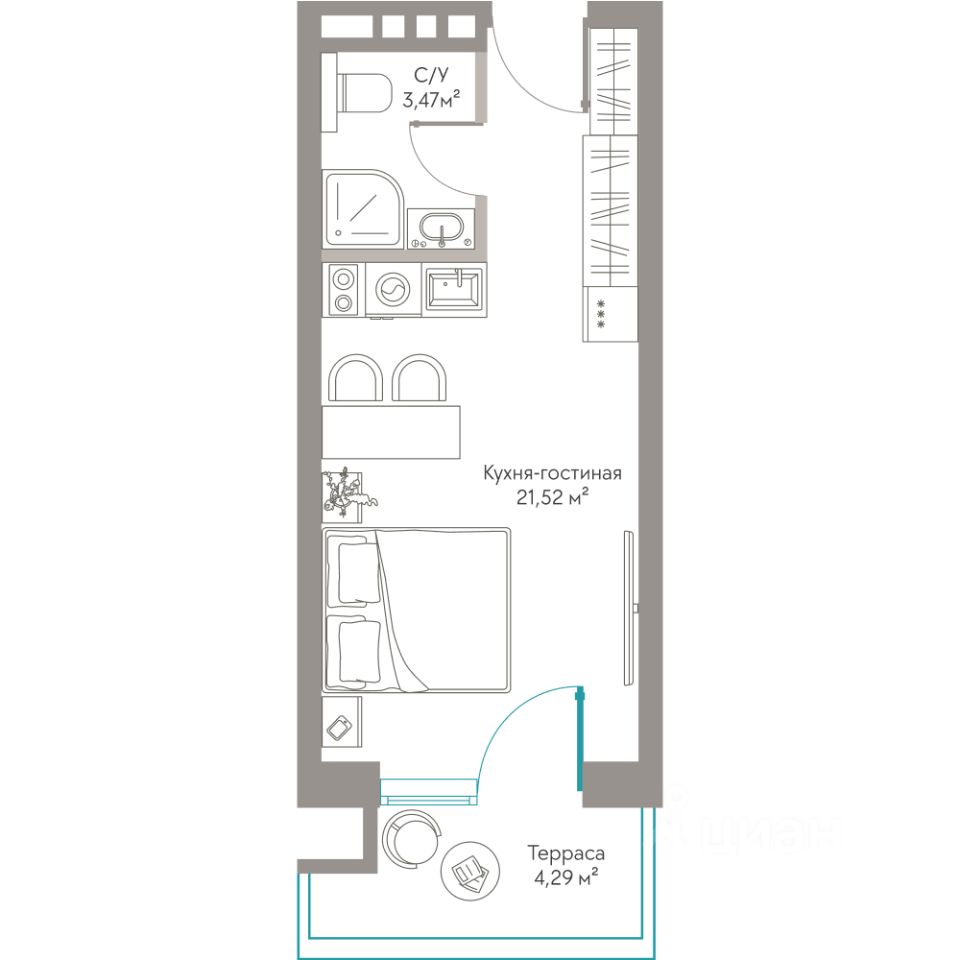 Продаются Апартаменты площадью 29,28 м²с приватной террасой, захватывающим видом на
