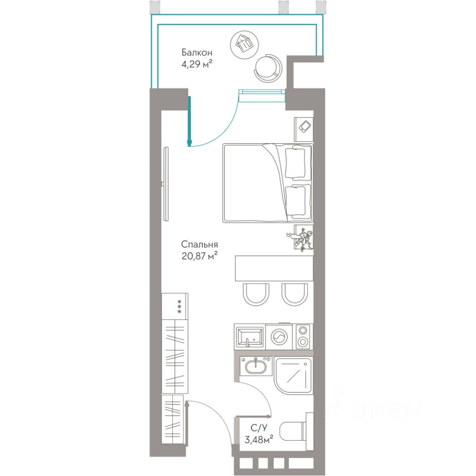 Продаются Апартаменты площадью 28.64 м²с приватной террасой, захватывающим видом на