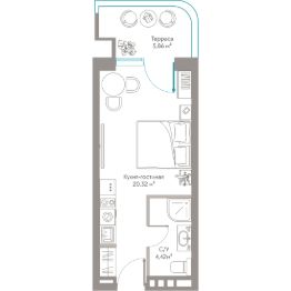 Продаются Апартаменты площадью 30,6 м²с приватной террасой, захватывающим видом на