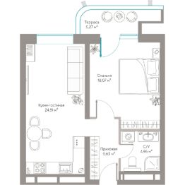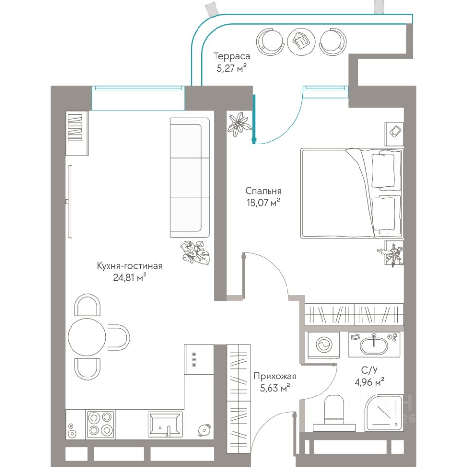 Продаются Апартаменты площадью 58,74 м²с приватной террасой, захватывающим видом на Двор