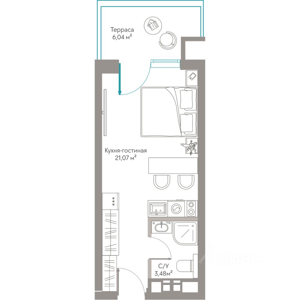 Продаются Апартаменты площадью 30,59 м²с приватной террасой, захватывающим видом на