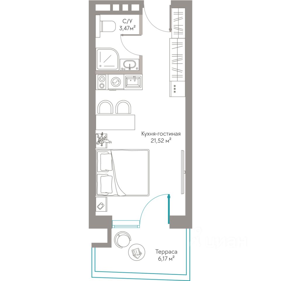 Продаются Апартаменты площадью 31,16 м²с приватной террасой, захватывающим видом на