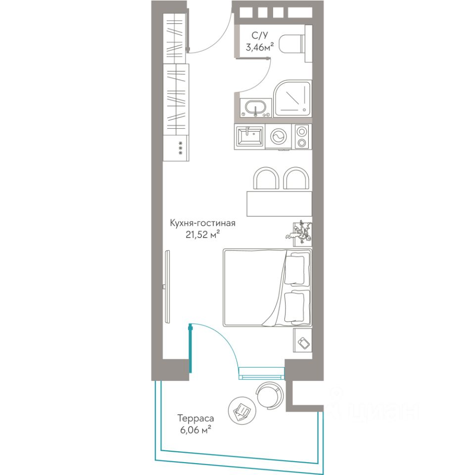 Продаются Апартаменты площадью 31,04 м²с приватной террасой, захватывающим видом на