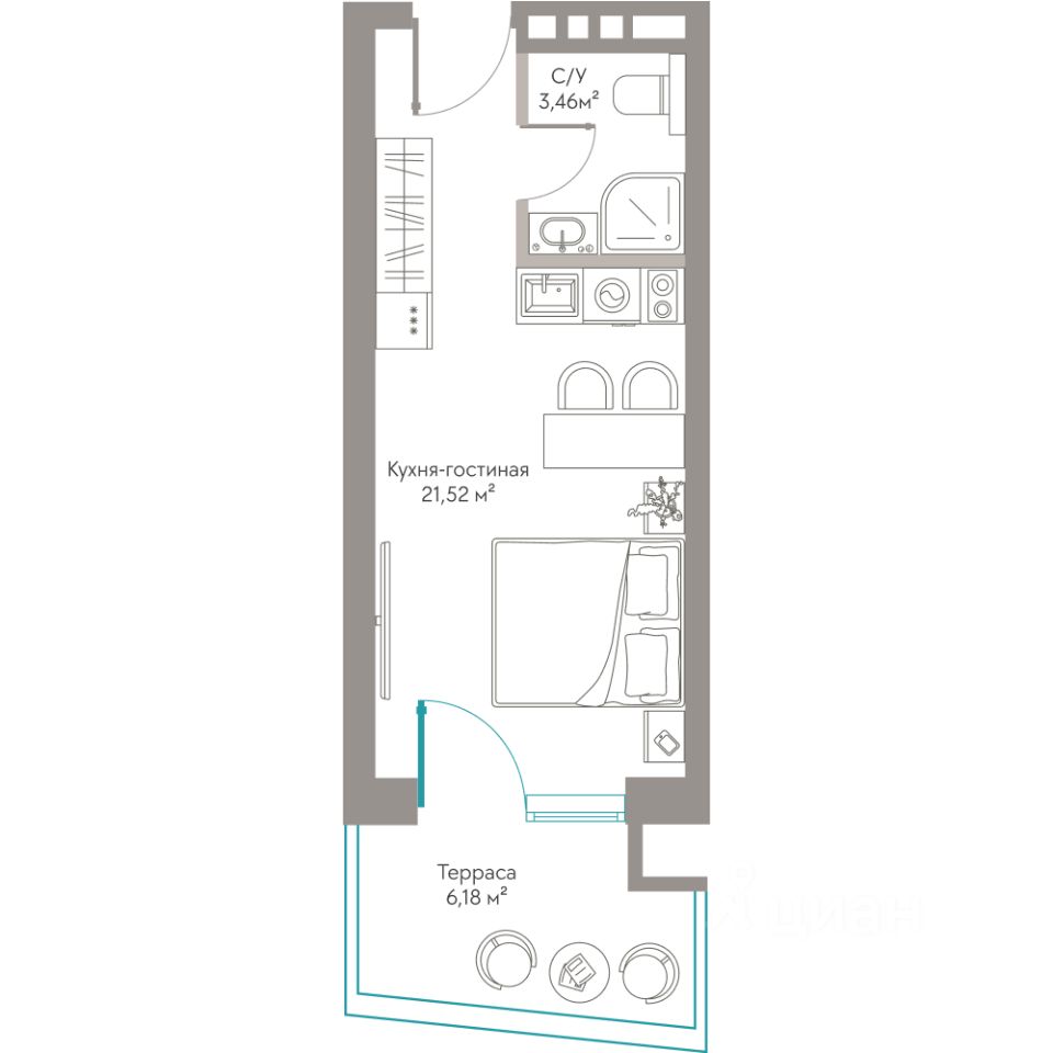 Продаются Апартаменты площадью 31,16 м²с приватной террасой, захватывающим видом на
