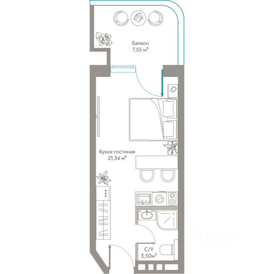 Продаются Апартаменты площадью 32,39 м²с приватной террасой, захватывающим видом на