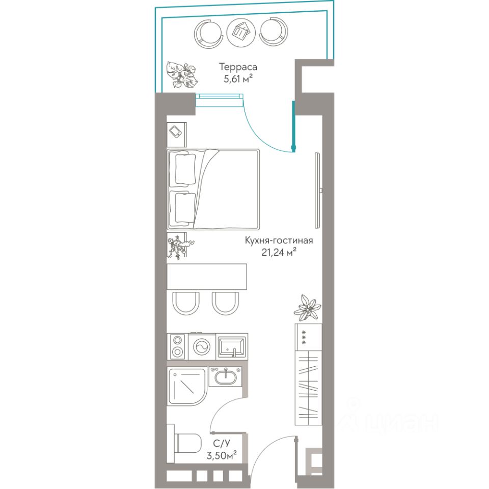 Продаются Апартаменты площадью 30,35 м²с приватной террасой, захватывающим видом на