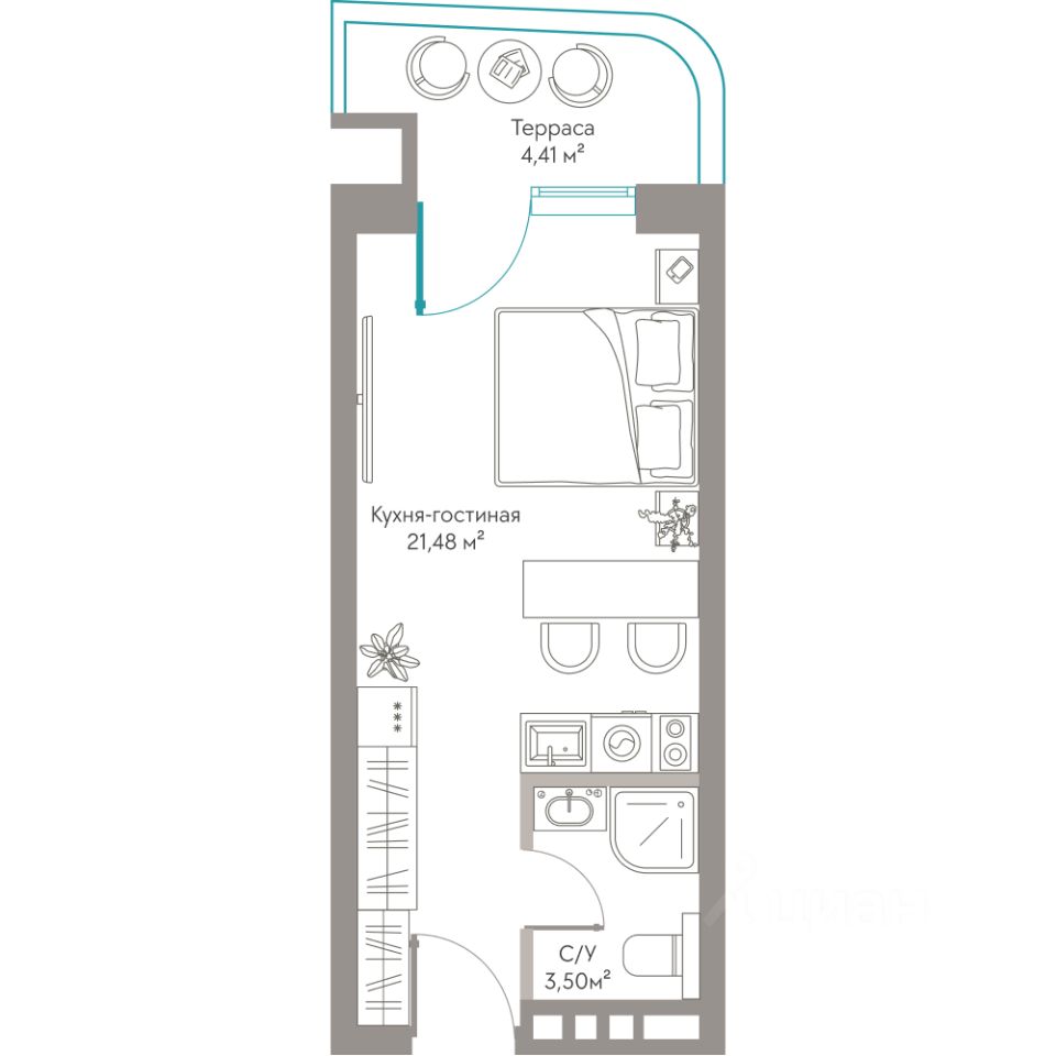 Продаются Апартаменты площадью 29,39 м²с приватной террасой, захватывающим видом на