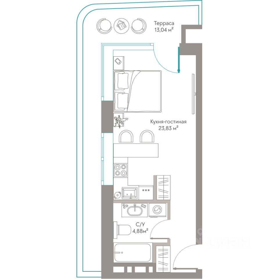 Продаются Апартаменты площадью 41,75 м²с приватной террасой, захватывающим видом на