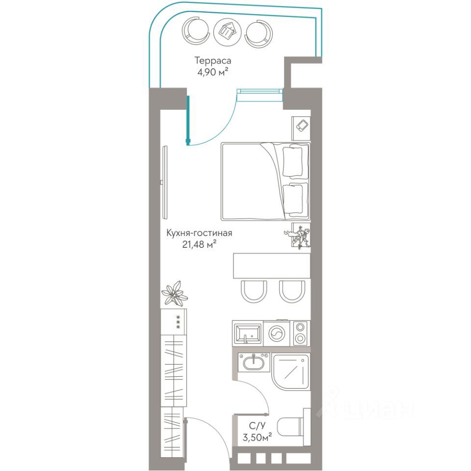 Продаются Апартаменты площадью 29,88 м²с приватной террасой, захватывающим видом на