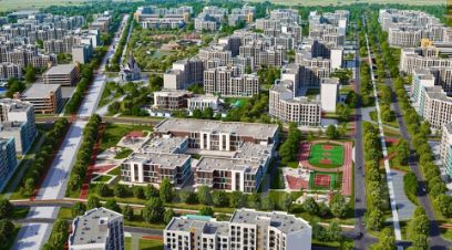 Представьте: не просто дома, а целый городской квартал с паркингами, торговыми галереями, аквапарком, детскими и спортивными площадками мирового уровня, ландшафтными парками, аллеями и даже Храмом.