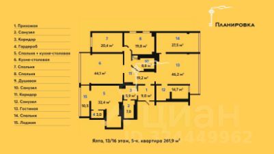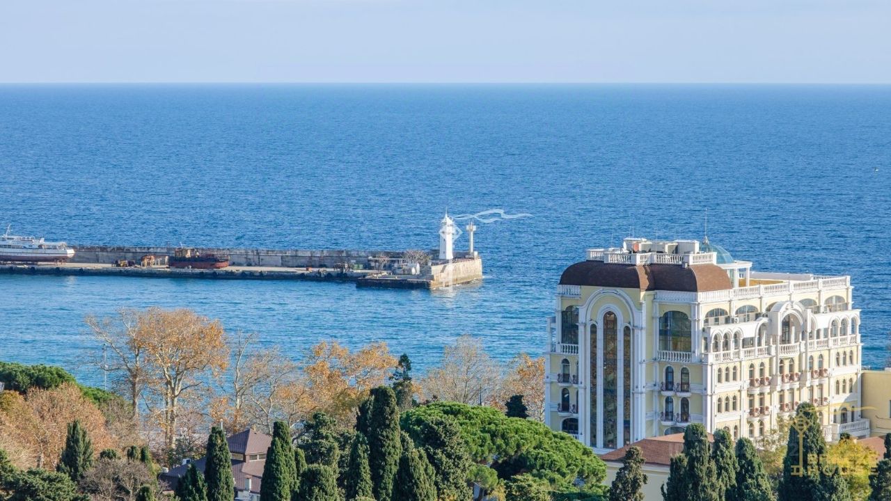 В одном из видовых домов центральной части Ялты представлена роскошная пятикомнатная квартира площадью 261,9 м², расположенная на 13 этаже современного 16-этажного здания.