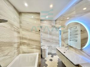 Чем уникальна эта квартира: Панорамная терраса с выходом в кухню-студию и спальню. Два санузла (общий и в мастер спальне). В квартире произведен дизайн-ремонт с применением дорогостоящих материалов. Правильное зонирование квартиры, очень удобная рабочая зона кухни. Спальня с выходом на террасу, с личным сан.узлом и гардеробной комнатой. Терраса спланирована так, что Вы не видите соседей, а они Вас!