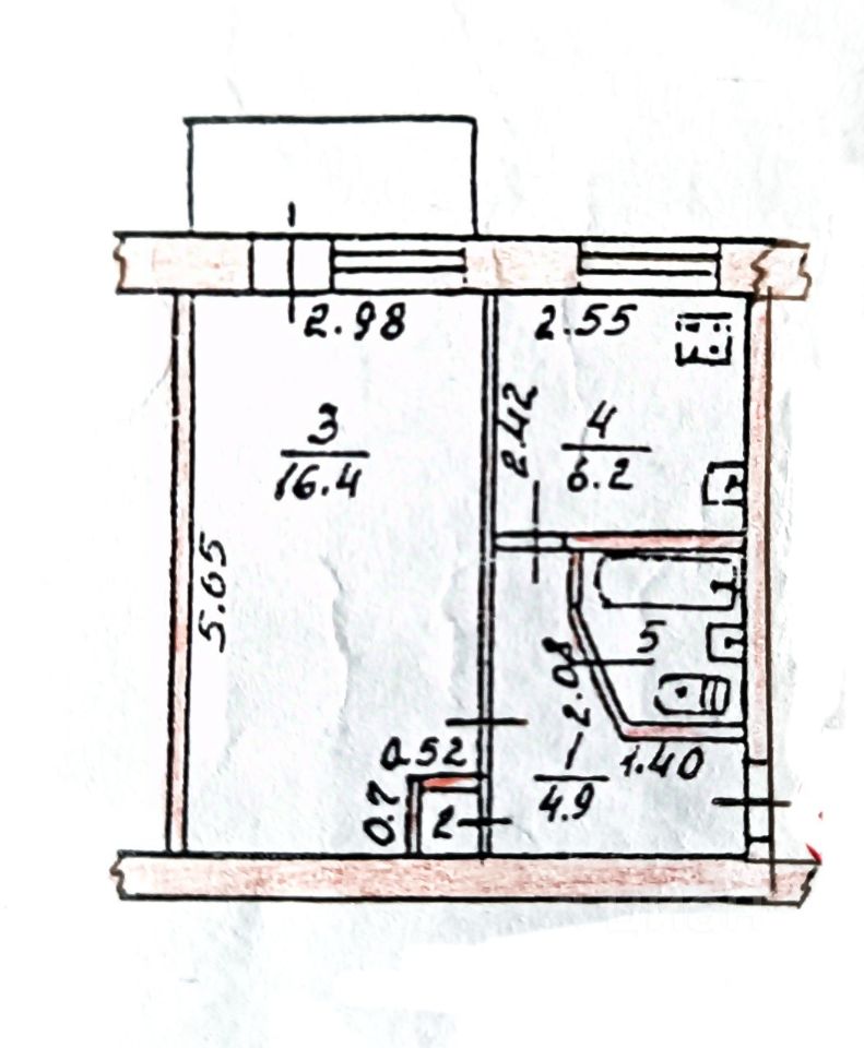 Квартира расположена на 4 этаже 5-ти этажного блочного дома. Общая площадь - 35 кв.м., жилая - комната - 17 кв.м. с выходом на широкий балкон, кухня - 6.5 кв.м., газовая колонка,совмещенный санузел с душевой кабинкой.