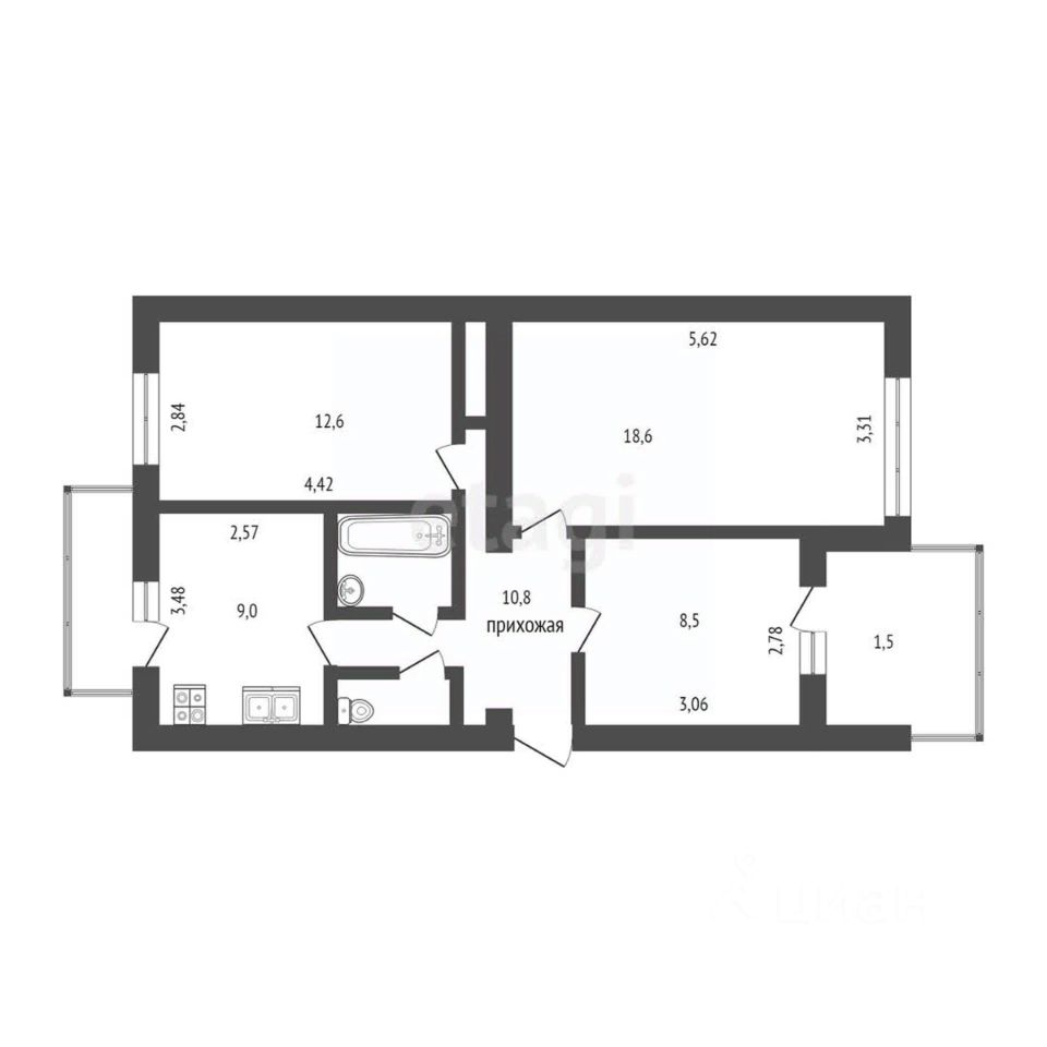 * просторной прихожей со встроенными шкафами-купе - 10.8 м2