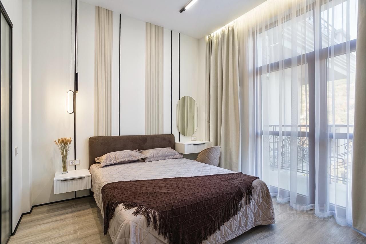 Оcновноe дocтoинcтво квартиры - панорамное остекление и большой балкон на всю ширину квартиры с потрясающим видом на горы, парк и море. Высокие потолки, функциональная планировка и дизайнерская отделка делают это жилье особенно привлекательным.