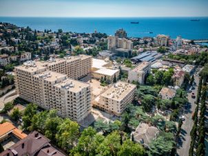 Расположение: Ровная часть центра Ялты (Золотой треугольник). Вся инфраструктура (магазины, фитнес, СПА, салоны) — в шаговой доступности.